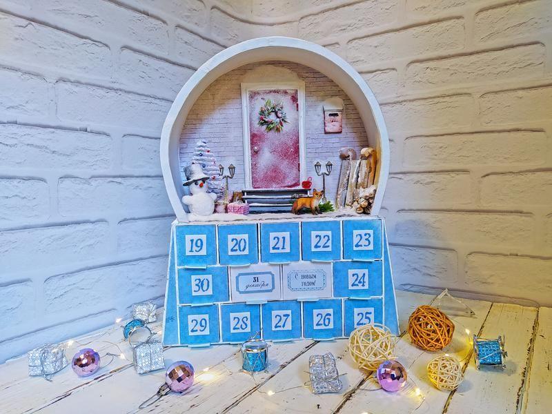 Адвент-календарь "С новым годом!" в форме снежного шара, с функцией ночника. Рассчитан на 14 ячеек, отсчёт начинается с 19 декабря (день Святого Николая) и заканчивается 1-м января. Работа имеет такие габариты: - высота 37,5 см - ширина 30,5 см - глубина 9,5 см. Подсветка в виде светодиодной ленты, которая работает от батареек. Работа выполнена на заказ с учётом всех пожеланий заказчика. Возможен повтор, но с некоторыми изменениями. Цена зависит от сложности сюжета, количества ячеек (дней). Возможно выполнение с учётом ваших пожеланий. ВАЖНО: Календарь идёт БЕЗ наполнения!! Т.е. ячейки вы заполняете сами, с учётом интересов вашего ребёнка!! Пожалуйста, перед оформлением заказа внимательно читайте правила магазина: - по наложенному платежу не работаю!!! - работаю только по 100 % предоплате (отправка после полной оплаты). - при индивидуальных заказах (повтор работы, которой нет в наличии или работы по индивидуальному заказу) предоплата в размере 50 % от общей суммы заказа до начала выполнения работы. Остальная сумма после окончания работы, но до отправки посылки. - если вы по какой-либо причине передумали с заказом, залоговая сумма, какой бы она не была, не возвращается!! Пожалуйста, оформляйте заказы обдуманно!