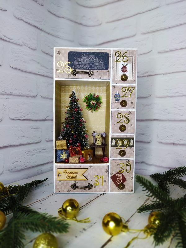 Адвент это календарь для отслеживания прихода праздника (Рождества, Нового года, дня Рождения (а почему бы и нет?) и т.д.). Не только маленькие верят и хотят верить в волшебство. Не только маленькие любят сюрпризы, не так ли? Поэтому Адвенты отлично подойдут: - подросткам. Потому что подростки - тоже дети. И они тоже любят подарки. - взрослым. Пример: сделать сюрприз любимому человеку, наполнив ячейки милыми безделушками. Чем не романтика? - для семьи! Это вообще идеальный вариант объединения всех домашних - придумав общие интересные задания на каждый день. А в последний, особенный, устроить настоящий праздник с сюрпризами! И да, повторюсь: Адвент-календарь не обязательно использовать в новогодние праздники. Его можно сделать и под ваше личное торжество. В работе использованы такие материалы: переплётный картон, дизайнерская бумага, ткань, дерево, фурнитура, декоративные элементы. Размеры 30*17*8 см. ВАЖНО: Календарь идёт БЕЗ наполнения!! Т.е. ячейки вы заполняете сами, с учётом интересов вашего ребёнка!! По запросу могу сбросить видеообзор работы. Возможно выполнение с учётом ваших пожеланий и идей! Пожалуйста, перед оформлением заказа внимательно читайте правила магазина: - по наложенному платежу не работаю!!! - работаю только по 100 % предоплате (отправка после полной оплаты). - при индивидуальных заказах (повтор работы, которой нет в наличии или работы по индивидуальному заказу) предоплата в размере 50 % от общей суммы заказа до начала выполнения работы. Остальная сумма после окончания работы, но до отправки посылки. - если вы по какой-либо причине передумали с заказом, залоговая сумма, какой бы она не была, не возвращается!! Пожалуйста, оформляйте заказы обдуманно! Товар под заказ