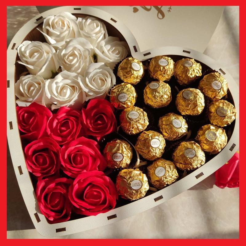 Подарунковий бокс із цукерок ferrero і троянд для дівчини ar20