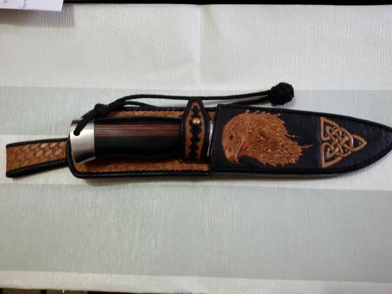 Тип подарунка: Оригінальний Кілька примірників у наявності Піхви виготовлені в єдиному екземплярі з натуральної шкіри італійського виробництва, повністю прошиті вручну сідельним швом вощеного ниткою,малюнок на шкірі зроблений за допомогою глибокого тиснення. Пофарбовані італійської фарбою. Оброблені аппретурой на основі бджолиного воску. Ніж зі сталі 440С оптимальна твердість; до 58-60 HRC.