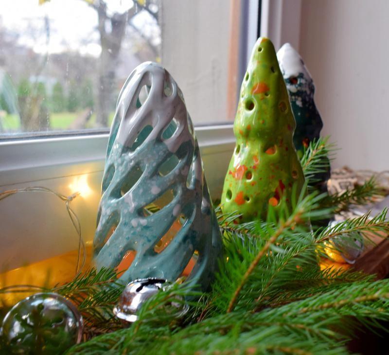 Яскравий свічник ручної роботи. Ажурна керамічна ялинка, яка створює затишну атмосферу. Це неймовірний різдвяний декор і хороший подарунок для ваших друзів. Висота 14 см. В середині світлодіодна гірлянда, також можна використовувати свічку.