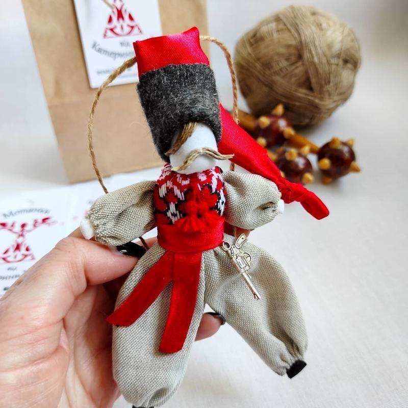 🏷️Мотанка у вигляді козака послугує вам підвіскою в машину, на рюкзак чи іншу річ. Висота - 10 см, кріплення - конопляна нитка, матеріали - тканина, атлас, конопляна нитка, екошкіра. . . . . #лялькамотанка