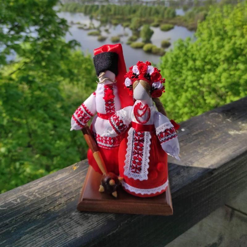 «Нерозлучники» — це як сімейний портрет, вони народжуються при створенні сім′ї і передаються у спадок іншим поколінням. Лялька мотанка «Нерозлучники» – це окремий різновид обрядової ляльки, яка робилася на добробут і щастя. Це весільна подвійна лялька, що зображувала молодого й молоду. Такій подвійній ляльці роби ли одну руку на двох, що повинно було символізувати злагоджене любов′ю життя. Якщо товару не має в наявності, а вам терміново потрібен сувенір, не переймайтесь! В магазині продавець завжди є великий вибір мотанок на будь- який смак!!! Тисніть ′Купити′ і продавець зв′яжеться з Вами!!! ☝️Усі елементи одягу мотанки є символічними. 🔻Ляльок одягали у вишиті сорочки, нижню спідницю та запаску. 🔻Кожен предмет одягу мав окреме значення: спідниця - символ землі, сорочка - це минуле, теперішнє й сьогодення, головний убір - очіпок, стрічка чи хустка - зв'язок з небом. 🔻Обов'язково одягали прикраси, такі як намисто - символ достатку і благополуччя. . Нерозлучники, 23 см . . . #ручнароботаукраїна