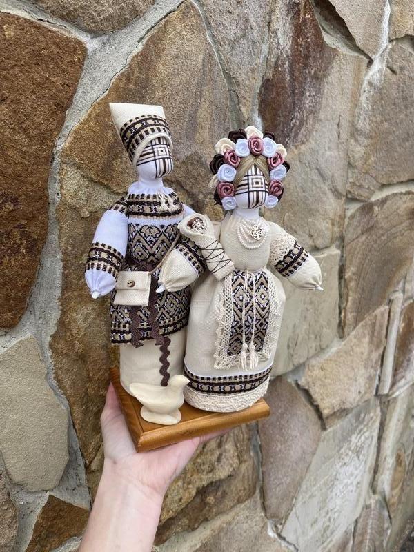Неразлучники» — это как семейный портрет, они рождаются при создании семьи<unk> и и передаются по наследству другим поколениям. Кукла мотанка «Неразлучники» – это отдельный вид обрядовой куклы, которая делалась на благополучие и счастье. Это свадебноая двойная кукла, изображающая молодую и молодую. Такой двойной кукле делай ли одну руку на двоих, что должно было символизировать слаженное любовь<unk> ю жизнь. Высота: 27-29 см