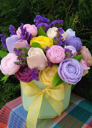 Тип подарунка: Краса і здоров'я Мило ручної роботи до складу входять різні ефірні олії, глина, кава, сухоцвіт та інші природні добавки.