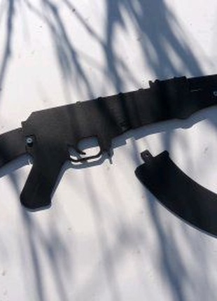 Виробник: Власне виробництво Тип подарунка: Оригінальний Металевий сувенір у натуральну величину легендарного автомата Калашникова АК47. Виготовлений з металу товщиною 2 мм Розбирається на 4 частини, що економить гроші та місце при пересиланні і транспортуванні. Пофарбований чорною матовою фарбою. Хороший тематичний подарунок. Можна повісити на стіну. З них виходять відмінні селфи. На відміну від фанери у воді не розмокає.