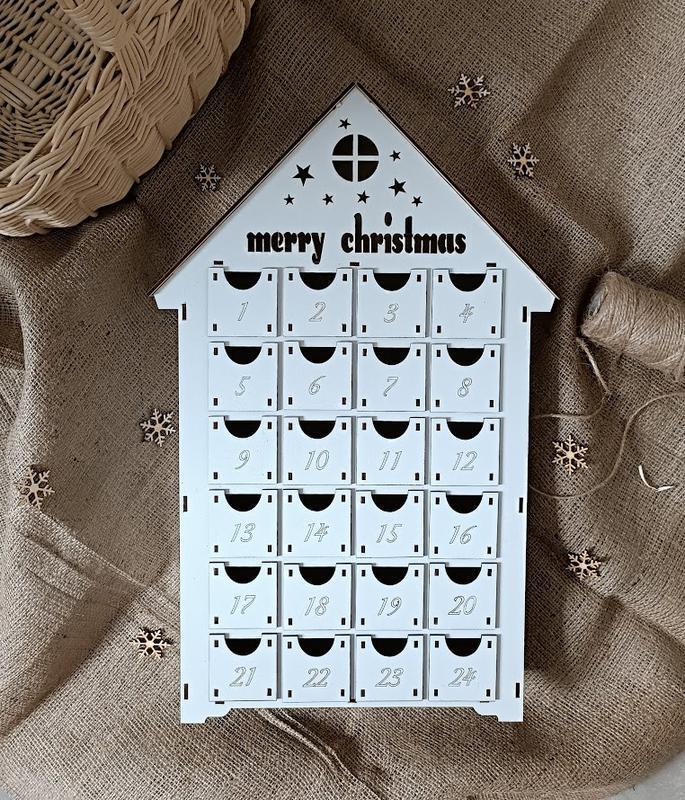 Тип подарунка: Сувеніри Кілька примірників у наявності Адвент календар на 24 ящички для незабутнього очікування святкового дня. Кожен ящик ви наповнюєте на власний розсуд, з урахуванням потреб та побажань дитини. Це можливість поєднання навчання, гри та дорогоцінного часу проведеного з дітьми. Відправляємо зібраний, готовий виріб! Виготовлено з ламінованого ХДФ, білого відтінку. Матеріал ламінований, простий у догляді. За допомогою кріплень, можна підвісити календар на стіну. Розміри: висота 57 см, ширина 33 см, глибина 6 см Розмір ящика 5/5/4,5 см