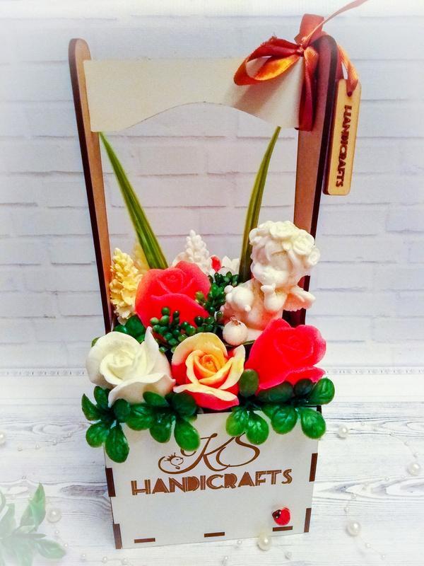 Букет в кошику з мила. мильні квіти ручної роботи.