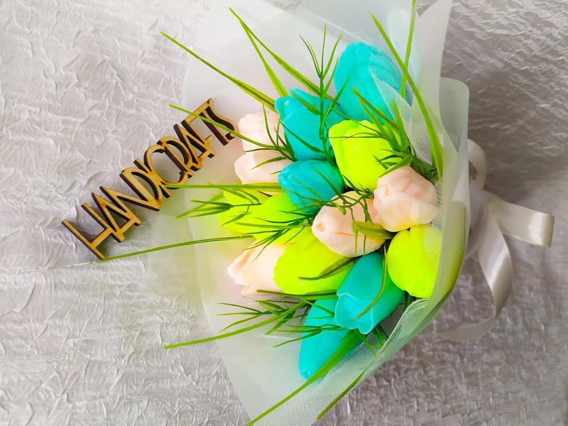 Тип подарунка: Оригінальний Кілька примірників у наявності Скажу по секрету…и строго меж нами- балдею я, видя мужчину с цветами! Ведь это любимой жене или маме, дочурке, коллеге, какой-нибудь даме. Не важен размер, полевые ль, с шипами, а главное встретят с какими глазами! Как женскую душу накроет волнами… Балдею я, видя мужчину с цветами!!! Цветочно-конфетный аромат! 15 тюльпанов из мыла! Цветочная шапка около 18 см. Высота букета около 35 см. 380 грн. Незабываемые букеты от ks_handicrafts Весна наступает! Смотрите также другие мои объявления, ассортимент продукции огромен!