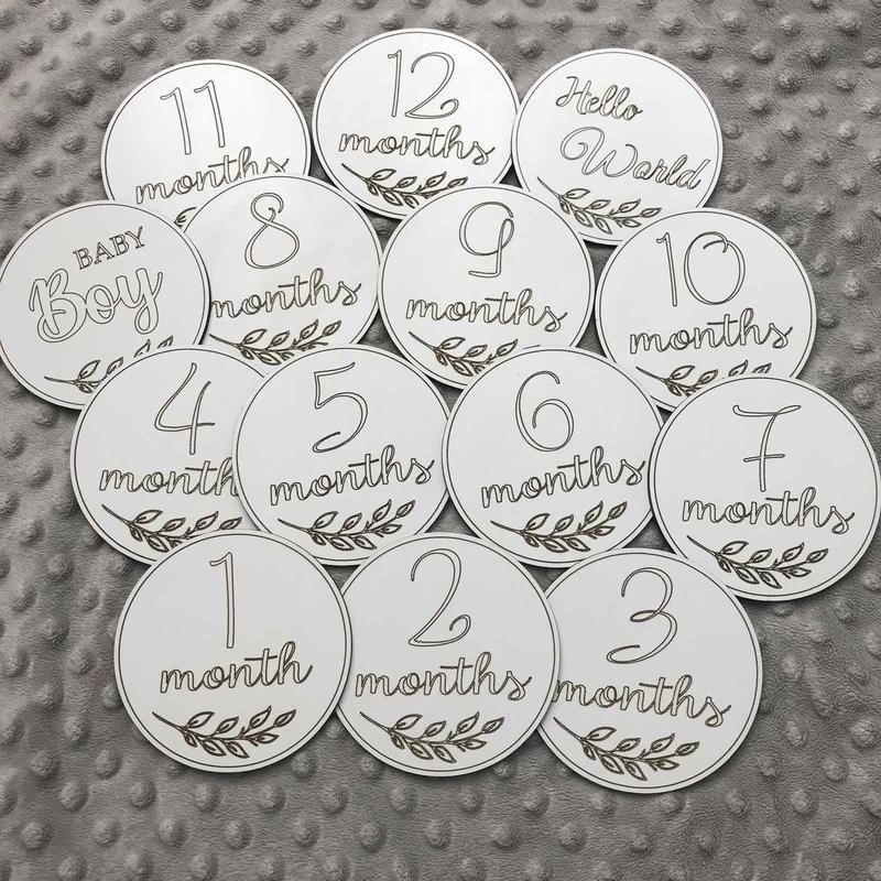 Кілька примірників у наявності Набір карток для фотосесії новонароджених стане чудовим подарунком на хрестини, для вагітної, на виписку, подарунком для новонародженого. - Виготовлені з ХДФ; - Набір з 14 табличок. - Діаметр 10 см; - Товщина 3 мм; Країна виробник: Україна Кількість в упаковці: 14 шт. Колір: Білий