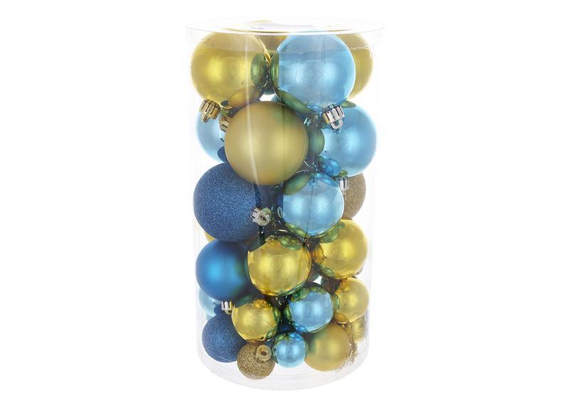 Набір ялинкових куль, колір - синій із золотим, 40шт - 6см, 5с...