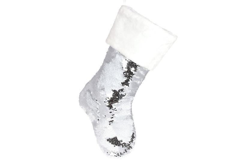 Виробник: BonaDi Кілька примірників у наявності Чобіток для подарунків з паєтками 49см, колір - срібло з білим Розмір 49см Матеріал: тканина Продається оптом та в роздріб з доставкою по Україні Виробник: BonaDi Країна виробник: Китай Тип: Шкарпетки для подарунків Колір: Білий