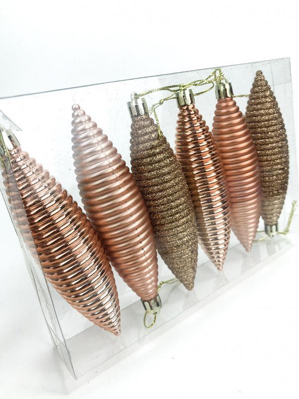 Набір ялинкових прикрас бурулька 12см, колір - мідь, 6шт