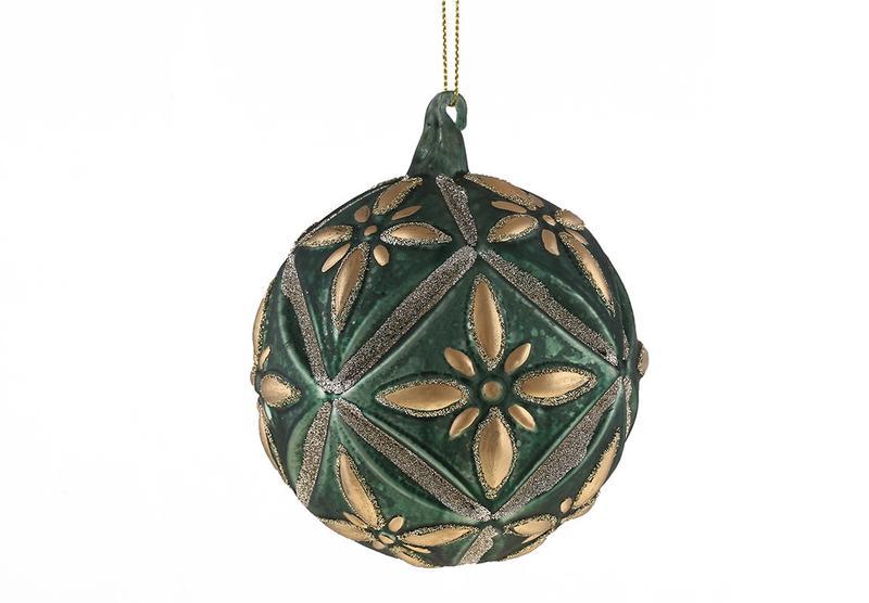 Кілька примірників у наявності Набір (4шт.) ялинкових куль з рельєфним орнаментом, 10см, колір - зелений із золотом Матеріал: скло Продається гуртом та в роздріб з доставкою по Україні Країна виробник: Китай Тип: Іграшки на ялинку Матеріал: Скло Колір: Зелений