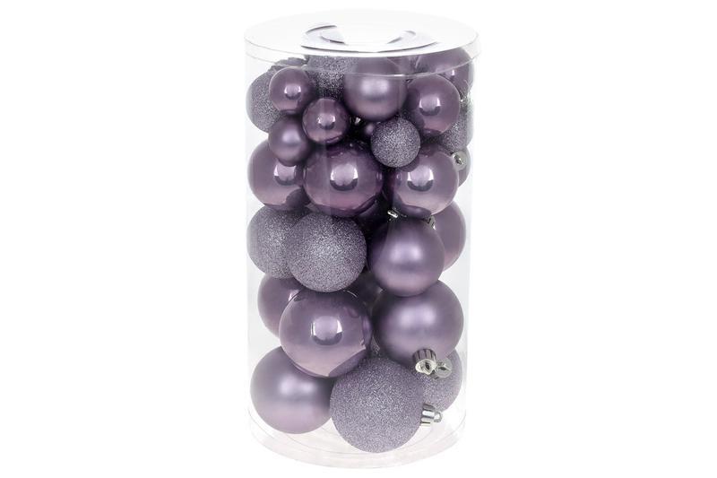 Набір ялинкових куль, колір - лаванда, 40шт - 6см, 5см, 4см, 3см