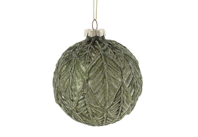 Набір (4шт.) ялинкових куль з рельєфним малюнком листя, 10см, ...