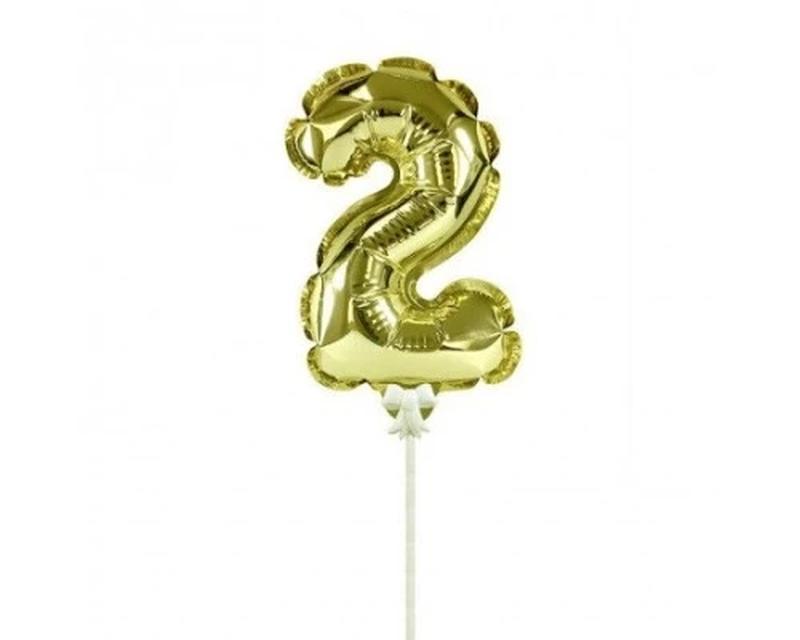 Фольгована куля цифра "2" на паличці, 15см, колір - золото