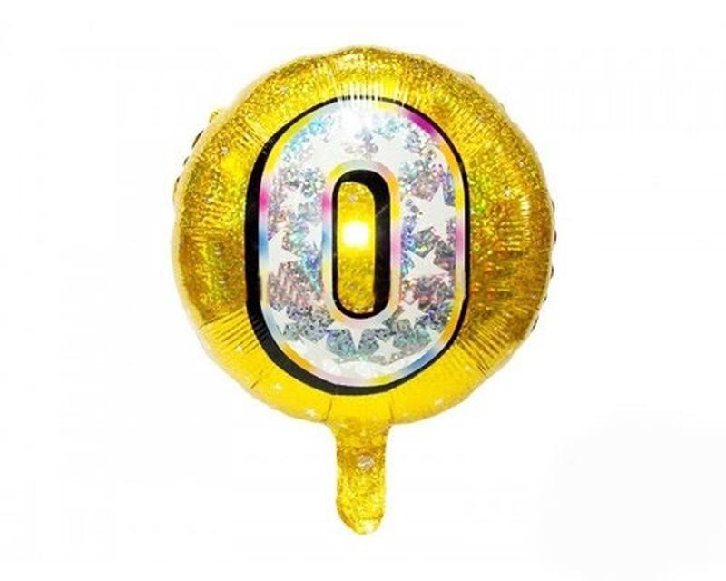Фольгована куля коло "цифра голографічна - 0", колір - золото