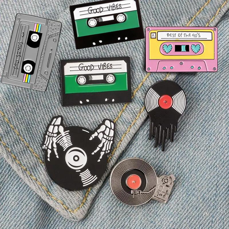 Набор значков на музыкальную тему resteq 7 шт. пины музыка. металлический значок кассета,...