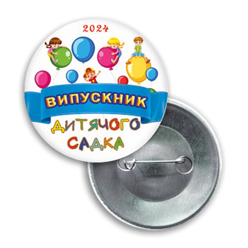 Закатной значок круглый "ВЫПУСКНИК ДЕТСКОГО САДА 2024". Также Вы можете подобрать розетку или ленточку под значок -> ССЫЛКА. Срок выполнения заказа на выпускные значки: - до 30 апреля - 1-2 рабочих дня; - с 1 по 12 мая - 1-3 рабочих дня; - с 13 по 25 мая - 2-3 рабочих дня. Срочные заказы значков на выпускной - "на завтра" или "день-в день" - согласовываются в индивидуальном порядке и принимаются в работу только после 100%-й предоплаты. Если Вы хотите заказать производство значков с Вашей картинкой или логотипом, перейдите по ССЫЛКЕ.