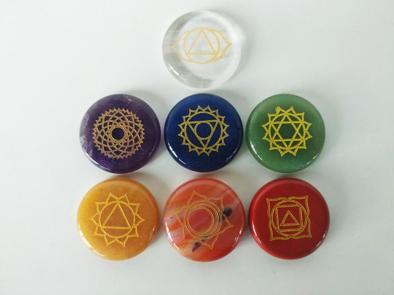 Подарочный набор из натуральных камней " 7 чакр " Описание: Натуральные камни: агат, сердолик, яшма, нефрит, лазурит, аметист, горный хрусталь. диаметр камня 25мм
