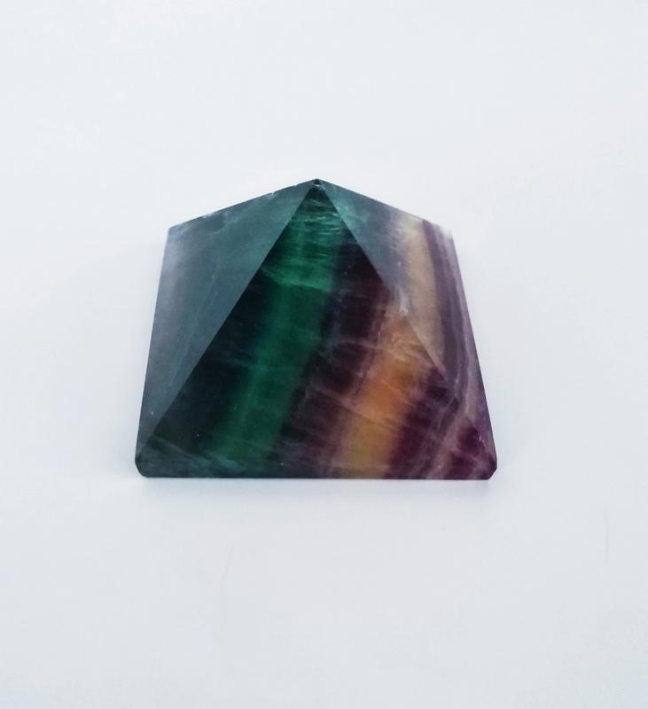 Пирамида из цветного флюорита Описание: Натуральный камень - флюорит, форма пирамида. Размер 5,1см*4,5см, вес 116 гр. Камень флюорит - интересная разновидность кристалла, которая обладает необычным эффектом люминесценцией. Это означает, что минерал светится под воздействием ультрафиолетовых лучей, а так же при нагревании. Его магические свойства часто используют при медитации.