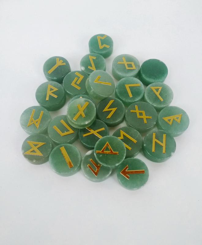 Руни з натурального каміння ( 24шт ) Опис: Натуральний камінь - зелений авантюрин Діаметр каменів: 16мм*7мм. * Всі камені природного походження, тому на них можливі невеликі відколи та мікротріщини, що є доказом натуральності каменю, а не його дефектами.