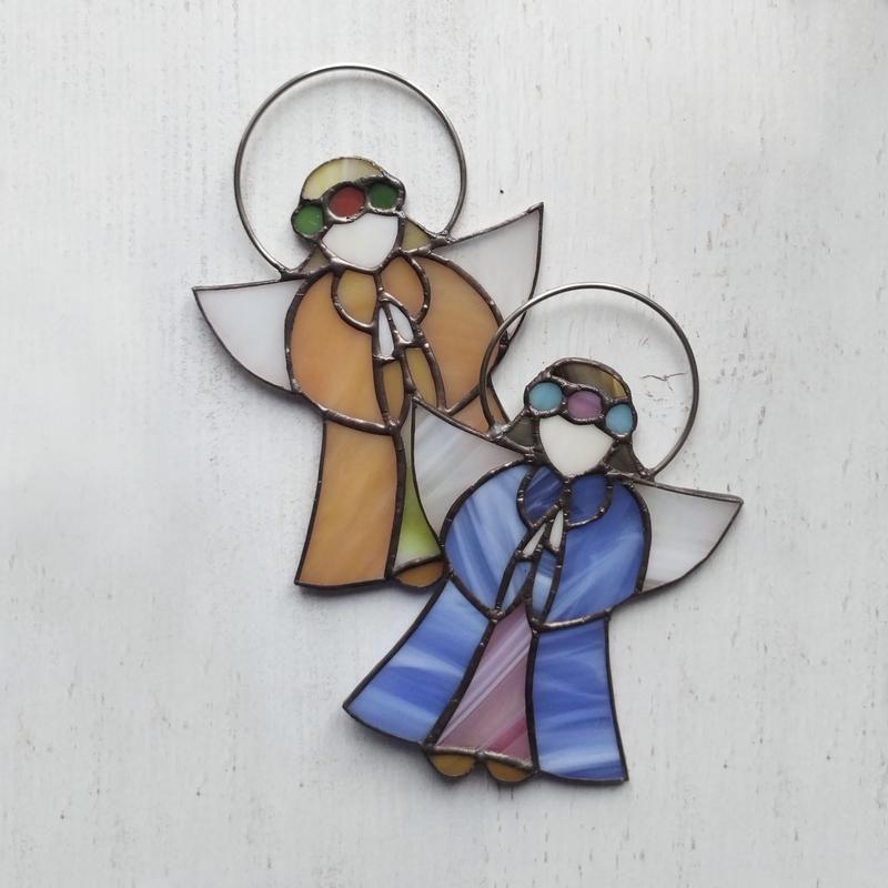 Красивий вітражний янгол зроблений в техніці Тіффані. Гарно виглядатиме на вікні або на дзеркалі, або можна просто повісити його на стіну, оскільки є два типи кріплення. Янгол стане чудовим подарунком для будь-якого члена сім'ї, близького друга чи близької людини. Колір на вибір рожевий чи синій. Розмір: висота 12,7 см ширина 7,62 см Інструкція з догляду 1. Протріть м'якою тканиною. 2. Не кидати.