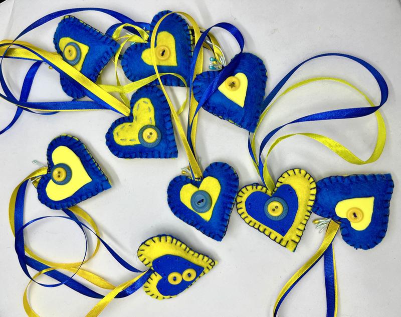 Желто-синие сердечка ручной работы сине-желтые подвески украина народный сувенир подарок
