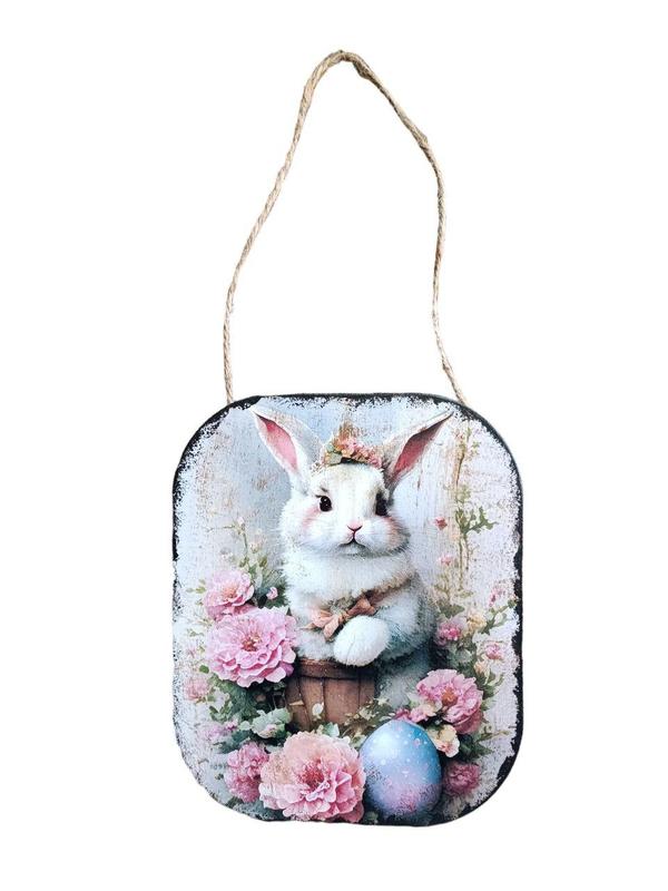 Великодневі прикраси, підвіс на стіну зайка в квітах