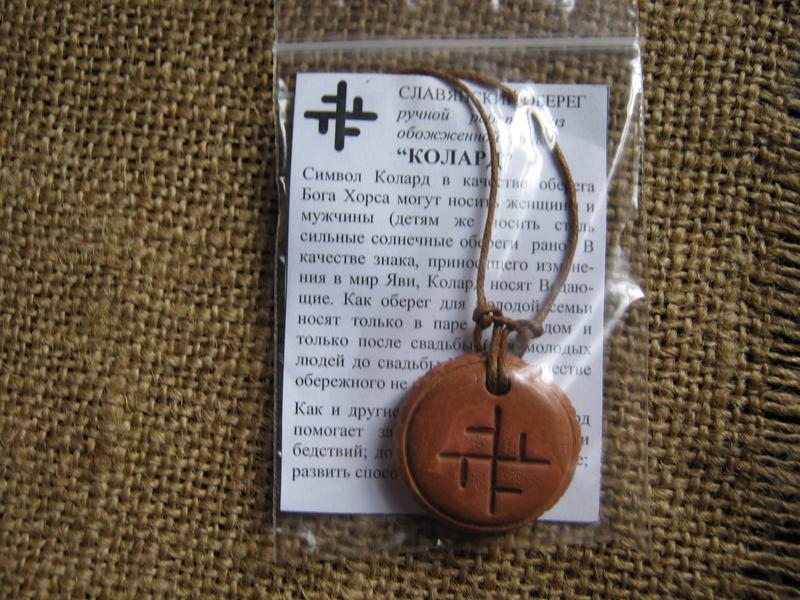 Символ КОЛАРД в качестве оберега Бога Хорса могут носить взрослые женщины и мужчины (детям же носить столь сильные солнечные обереги рано). Как оберег для молодой семьи носят только в паре с СОЛАРД и только ПОСЛЕ свадьбы. Как и другие обереги Хорса, КОЛАРД помогает защититься от неудач и бедствий; добиться успехов в работе; развить способности к магии. Оберег сделан из ПРИРОДНОЙ глины вручную (на РАСТУЩУЮ ЛУНУ), без применения каких либо шаблонов или форм. Затем так же вручную прорезаю на нем символ оберега и уже после тонировки специальными красками для керамики (НЕ акриловыми, а натуральными, сделанными на основе оксидов металлов, что крайне важно для защитных свойств оберега) дважды обжигаю его в муфельной печи при температуре около 1000 градусов. Высокотемпературный обжиг придает глине прочность и устойчивость к воде и превращает ее в керамику, при этом сохраняются все волшебные свойства натуральной глины как носителя силы оберега. Оберег можно мыть в воде, а при необходимости очистить от чужой энергетики - подержать над пламенем свечи. Так как это ручная работа, обереги с одинаковым символом отличаются друг от друга размером (обычно это диаметр от 20мм до 25 мм), цветом глины и тонировки символа, видом обратной стороны оберега (на некоторых есть возможность написать свое имя славянскими Рунами и этим усилить действие оберега лично для Вас). Поэтому перед тем, как я Вам отправлю посылку, мы с Вами все эти вопросы обсудим в телефонном режиме и при необходимости я вышлю дополнительные фото оберегов с одним и тем же символом, что бы Вы определитесь, какой из них Вам приглянулся больше. Дополнительные характеристики: Тематика рисунка/формы: Круглая форма