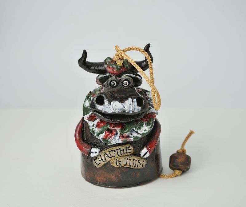 Керамічний дзвіночок у вигляді бика. Такий бик обов'язково принесе у Ваш дім добробут і щастя, а також стане приємним подарунком для близьких і рідних Вам людей.