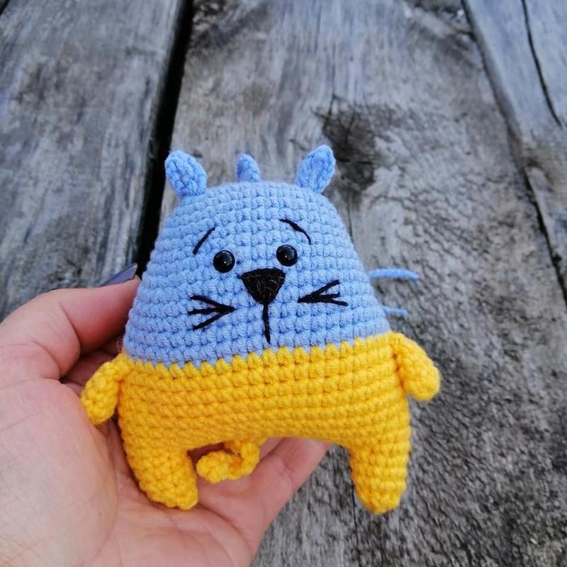 Желто-голубой котик. сувенир украинский.вязаный кот.
