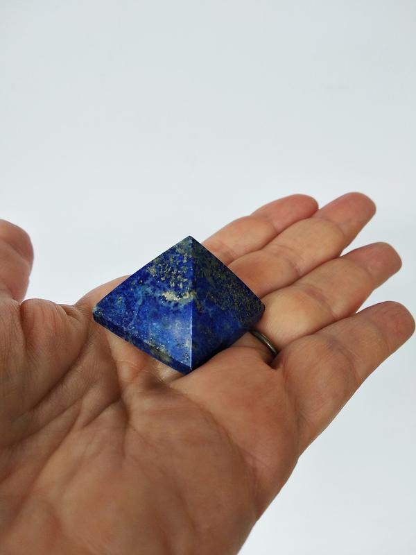 Пирамида из натурального камня - генератор энергии. Перерабатывает негативную энергию в позитивную. Используется для очищения пространства . Описание: Натуральный камень: лазурит. Размер около: 2.6см - 3,2cм, вес 20гр -32гр Камень лузурит по своему значению олицетворяет такие понятия как духовная чистота, преданность идеалам и непорочность мыслей. Он способен отогнать дурные мысли, укрепить сон, сохранить память и уберечь от порока пьянства и наркомании. Если обладатель самоцвета честен и бескорыстен, то камень принесет ему здоровье, счастливую жизнь, оградит от сглаза и черной магии.