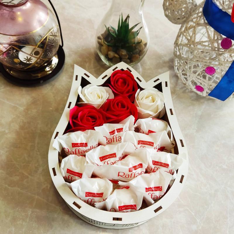 Подарочный мини боксик из raffaello и роз для девушки ar3\1