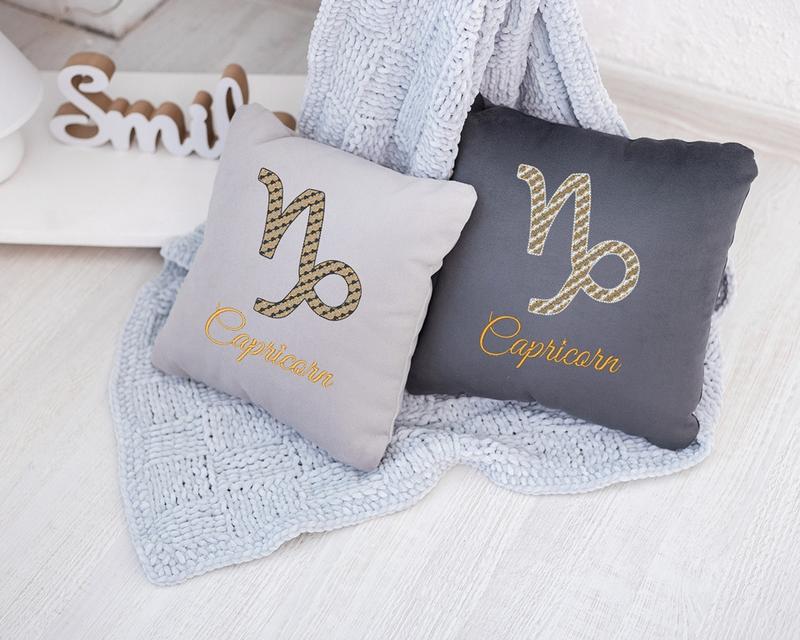 Подарункова подушка з індивідуальною вишивкою Знака Зодіка — найкращий подарунок на удачу! Вона стане талісманом, який буде з Вами вдома, на роботі та в машині. Ми можемо вишити на подушці Ваше привітування, дату свята або Ім'я Власника! Таке побажання запам'ятається надовго! Корпоративним клієнтам ми пропонуємо нанести на подушку логотип компанії. У нас також широкий спектр можливих кольорів і матеріалів, для реалізації будь-якої Вашої ідеї промо — продукції або подарунка працівникам або клієнтам. Матеріал: щільний двобічний флок; Наповнювач: гіпоалергенний силікон (фірафайбер); Зображення на подушці: вишивка. Не линяє, стійка до стирання, прання й УФ-випромінювання; Розмір подушки за закрою: 35 * 35 см. Рекомендації щодо догляду: наповнювач вийняти та прати без наповнювача за 40 градусів, делікатне віджимання, прасування за середньої температури. Не рекомендується використовувати: вибілювач або порошок для білого.