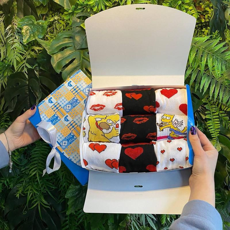 В комплект входить 9 пар шкарпеток, подарункова упаковка та стрічка. - Розмір універсальний 40-45 - Сезон: Літо-Осінь-Весна - Довжина: висока - Преміум якість, гатунок 1 - Малюнок вишивка, не стирається. - Виробник: Україна - Склад: Бавовна - 90%; дорлостан - 10%