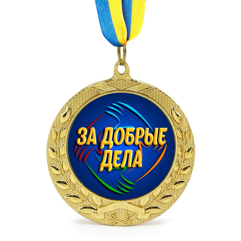 Медаль подарочная За добрые дела - отличная и оригинальная награда, ее можно вручить только тому человеку, который для Вас сделал доброе дело, совершившим благородный поступок. Подарок символичен и необычен, говорящий как дорог для Вас поздравляемый человек! Медаль подарочная За добрые дела в золотом обрамлении лавровых листьев - произведет впечатление и несомненно станет отличным подарком на память! Медаль выполнена из сплавов различных металлов с покрытием благородного золотистого цвета нанесенного булатным способом, диаметром 7 см, размером жетона 5см и желто-голубой репсовой лентой длиною 40см, упакована в подарочную коробку из картона. Медаль не подходит для выполнения на ней гравировки. Среди нашего широкого ассортимента товаров, Вы найдете множество необычных и оригинальных подарков для различных мероприятий. Наш магазин предлагает товары оптом и для дропшипперов, вы можете оформить заказ на сайте Карнавал Приколов и задать любые интересующие вопросы менеджеру, заказав звонок на нашем сайте.