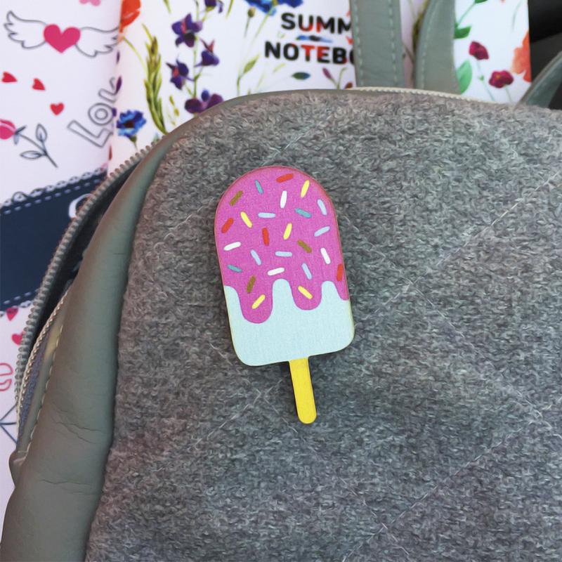 Рыжий лисенок, яркая машина, скромный зайка - все значки имеют свой собственный характер и несут отпечаток настроения. Представьте, сколько радости Вы сможете подарить своим близким, просто подарив такой маленький милый значок! Деревянный значок "Эскимо" может служить в качестве сувенира или же броши, прицепите его на свитер, сумку, рюкзак, шарф или же шапку и поднимите настроение себе и всем окружающим! А если вдруг Вы не нашли то, что искали, просто свяжитесь с нами и мы поможем воплотить в жизнь Ваши задумки.