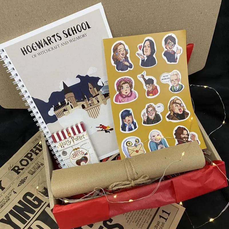 Подарунковий бокс Гаррі Поттер ******* *** Наповнення: - Блокнот Хогвартс - Бобы Берти Боттс - Стикерпак - Газета Колір, розмір боксу, а також стрічок і паперу тіш'ю підбирається під кожен конкретний бокс, та може відрізнятися від того, що зображений на фото, всі нюанси Ви можете уточнити з нашим менеджером. В наявності також: мантії, чарівні палички, підвіски, браслети, окуляри, шалики, шапки, стікери, солодощі і багато іншого. Величезний вибір Гаррі Поттера, ******/DC, **** of ******** Чекаєте листа з Гоґвортсу? Вам точно до нас. Хочете творити магію, але все ще немає чарівної палички? Вибирайте будь-яку, у нас їх більше 20 видів. Хочете відчути силу ********? У нас є круті бокси по цій темі. Ви без розуму від **** ***? І це теж у нас є. У нашому инстаграме **************** ви можете подивитися усі наші товари, у нас більше 500 позитивних відгуків в instagram Часті питання (***). Чи можу я сам зібрати бокс з того, що мені подобається? - Так, звичайно. Ви можете: 1. самі скласти бокс на своє бажання з будь-яких товарів; 2. вибрати вже з готових боксів (instagram **************** або каталог магазину на ********* 3. купити окремі товари без боксу. Наш instagram ****************