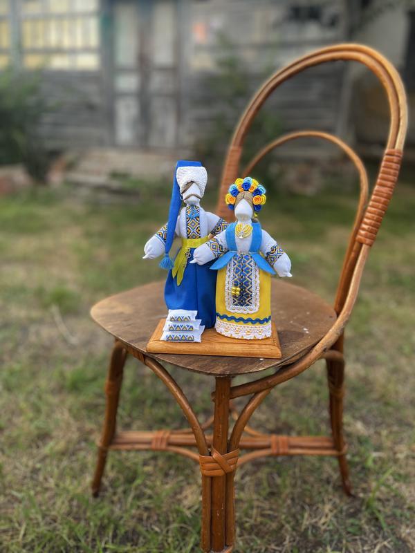 Нерозлучники» — це як сімейний портрет, вони народжуються при створенні сім′ї і передаються у спадок іншим поколінням. Лялька мотанка «Нерозлучники» – це окремий різновид обрядової ляльки, яка робилася на добробут і щастя. Це весільна подвійна лялька, що зображувала молодого й молоду. Висота: 26-28 см