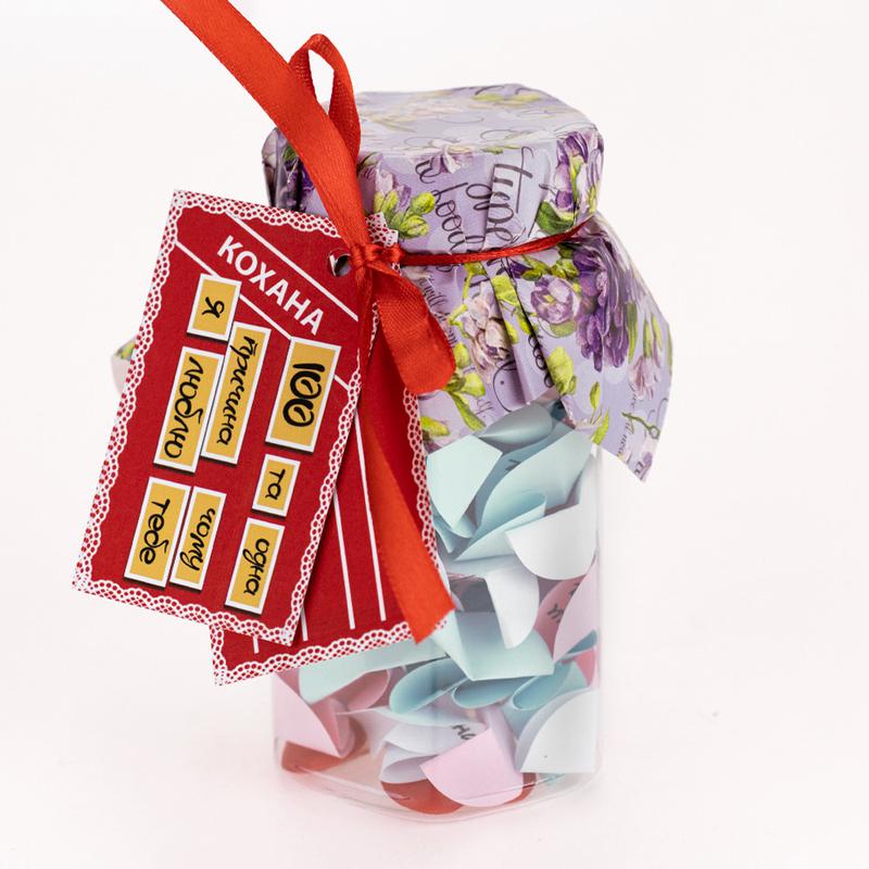 100 и Одна Причина, почему я люблю тебя Любимая (укр.) — тщательно отобран нашими специалистами по ярким эмоциям. Баночка поможет Вам ежедневно радовать близкого Вам человека теплыми словами любви. Такой изумительный сюрприз можно подарить на день рождения либо преподнести в день всех влюбленных. Разворачивая фантики, произносите Лучшая, Милая, Любимая… Разумеется. Подарок выполнен на украинском языке. Вы можете постараться сделать такую банку своими руками, но это заберет у Вас невероятно много времени. Чтобы Вы не сидели несколько часов, вырезая фантики и придумывая, что же написать, мы сделали все за вас. Вы можете купить уже готовую увлекательную игру в подарок родным и близким, друзьям и знакомым. Интернет магазин Карнавал Приколов предлагает купить оптом интересные и оригинальные подарки по низким ценам, а также Вы можете оформить заказ на сайте и задать любые интересующие вопросы менеджеру, заказав звонок на нашем сайте.