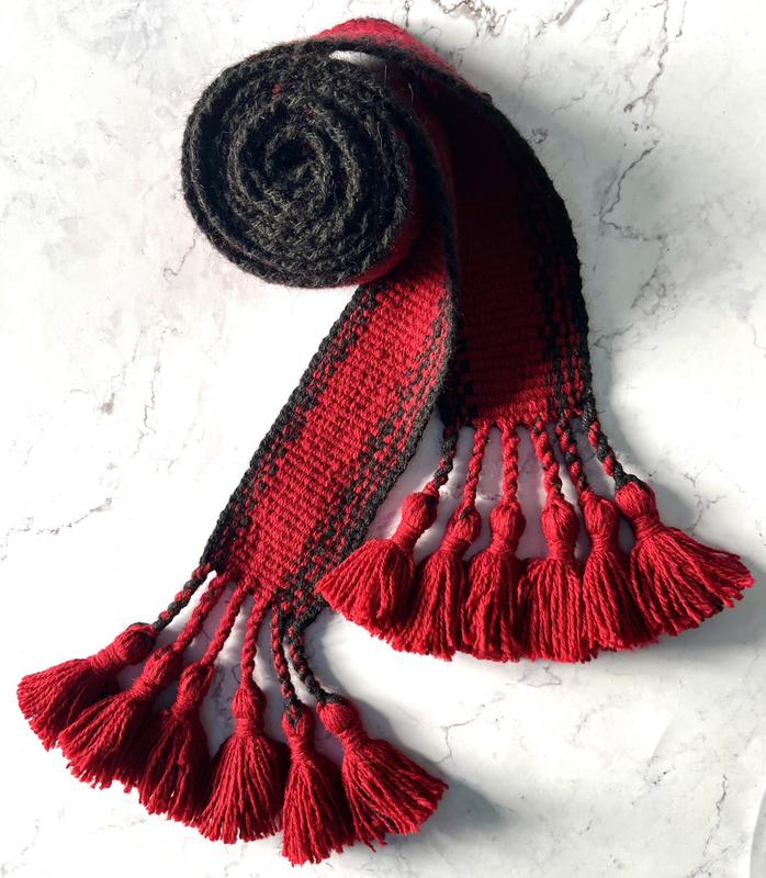 Чорно-червона класична крайка пояс до вишиванки Подарунок з України 50% вовна «Вівчарі» 245 см х 7 см Ручна робота
