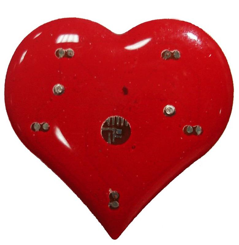 Значок сердечко из пластика на булавке 2.7 см красный