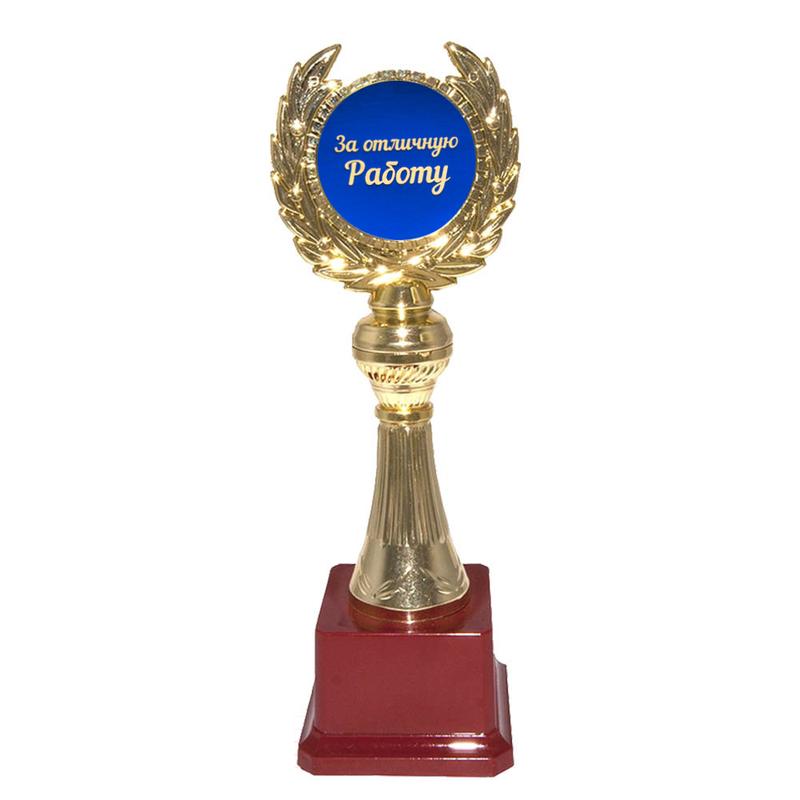 Статуэтка 57157 За отличную работу Лавровый венок - путь - отличная и оригинальная награда сотрудникам или коллегам поразит и впечатлит! Статуэтка выполнена в виде 3D композиции лаврового венка на стеле. Фигурка выполнена золотым цветом на классическом бордовом пьедестале. Статуэтка упаковывается в индивидуальный подарочный тубус из прозрачного пластика. Уникальная упаковка разработана компанией Карнавал Приколов. На бордовом пьедестале статуэтки может присутствовать имитация мраморных разводов. Оригинальные награды и призы в наличии и на заказ по отличной цене. Большой выбор кубков, медалей и наградных статуэток для любого повода в интернет магазине Карнавал Приколов.