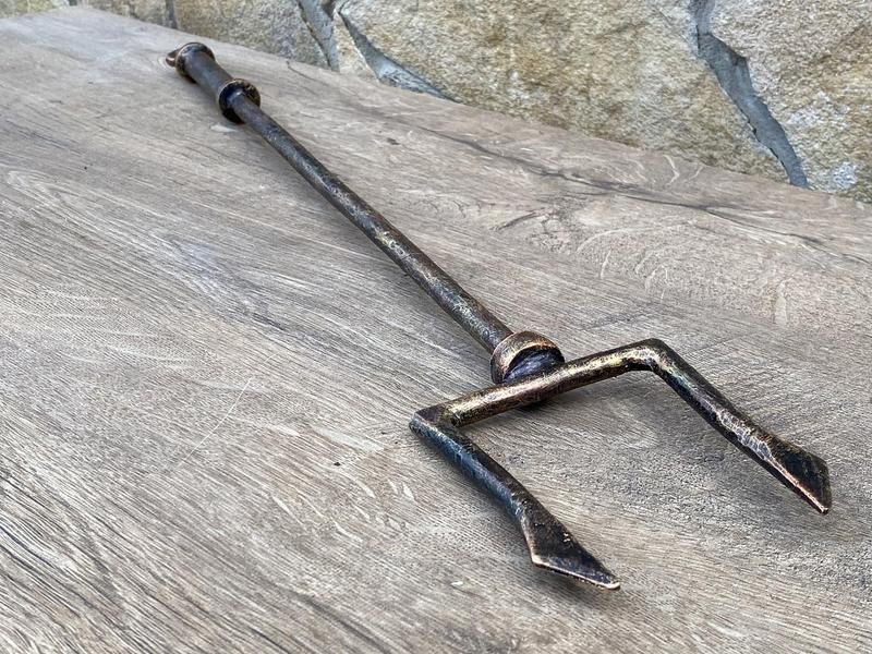 Ищете необычный бизуб? Вот кованый вручную бизуб. Вы можете использовать его для косплея или как декор для дома. Размер: - Длина: 60 см Цвет: - Черный, покрытый медной/бронзовой патиной.