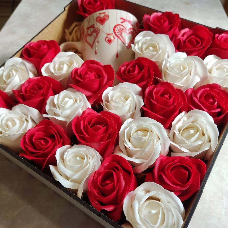 Скажите «Да» очарованию и нежности с нашими подарочными наборами, наполненными сладкими удовольствиями, которые точно покорят сердца ваших близких! День влюбленных, 8 Марта, День рождения, Новый год, И много других особенных моментов в жизни! В состав входит: 🎁 Коробка - Чашка - Розы 27 шт - Наполнитель - стружка 🎁 Размер коробочки: 24-24-10 см Наши подарки - лучший способ выразить свои чувства