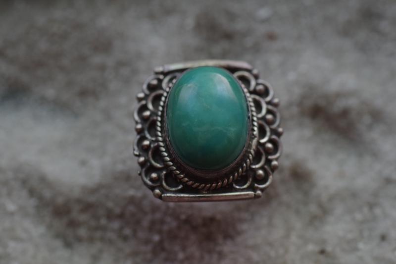 тибетское кольцо с натуральной бирюзой.в серебре ручной работы с тыльной стороны защитная печать размер 18,5 длина камня 18мм вес 11,7