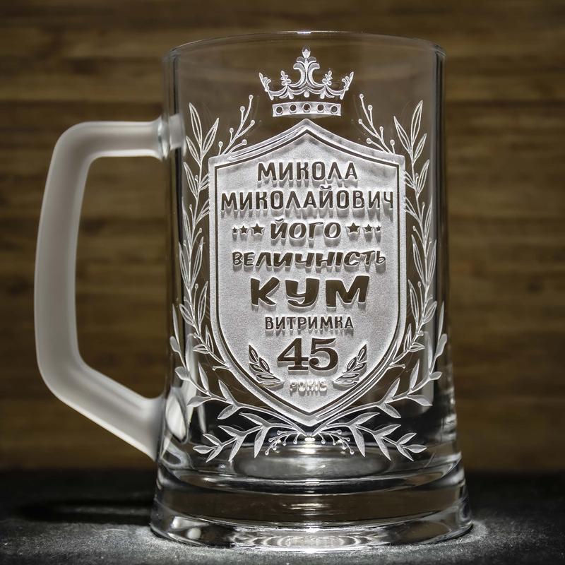 Именной пивной бокал с гравировкой на подарок куму его величество кум