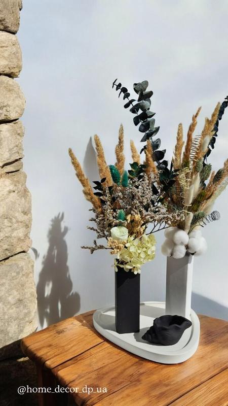 вази прямокутної форми, також є інші види букети з сухоцвітів та стабілізованих квітів створюємо під замовлення Колір ваз може бути будь який також ви можете замовити підставки, кашпо для біжутерії, свічки